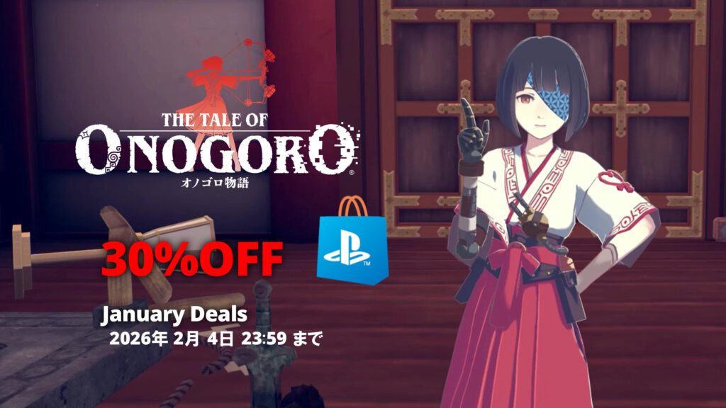 Sale PlayStation Storeで30%OFF! PlayStation Storeで30%OFF! January Deals 開催!対象の配信ストアで『オノゴロ物語 ~The Tale of Onogoro~』が30%OFF!! PlayStation Store セール期間:2026年1月21日 00:00~2026年2月4日 23:59 JST割引率:30%OFF対象タイトル:『オノゴロ物語 ~The Tale of Onogoro~』『The Tale of Onogoro Soundtrack Edition』対象HMD:PS VR, PS VR 2 『オノゴロ物語』 on PlayStation Store 『The Tale of Onogoro Soundtrack Edition』 on PlayStation Store Published 2026年1月21日 Categories セール Facebook Twitter